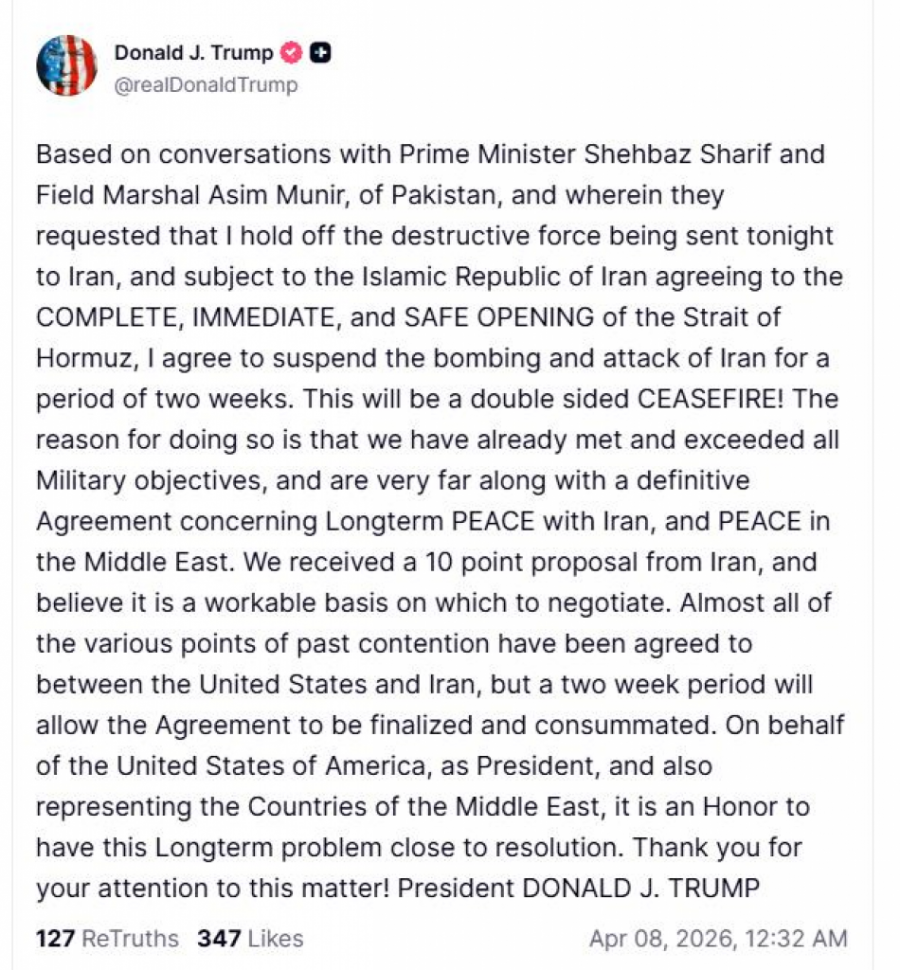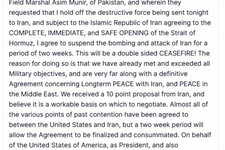 Ovo saopštenje podelio je i Donald Tramp na svojoj mreži Trut sošal, čime je dodatno pojačana pažnja javnosti prema novom signalu iz Teherana.