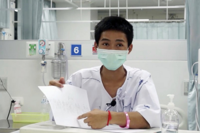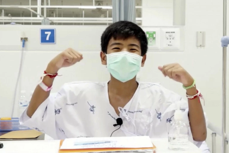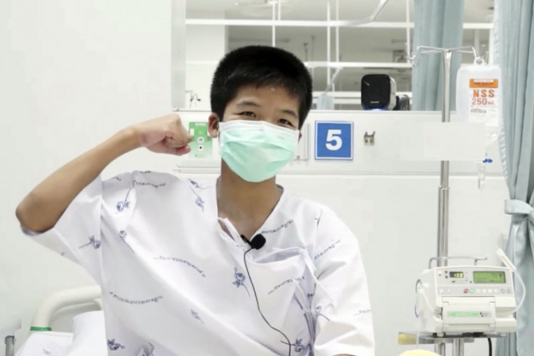 - Zdravo, moje ime je Biv. Dobro sam. Želim da se zahvalim svima koji su brinuli - rekao je 14-godišnji Ekarat Vongsukčan koji je podigao obe ruke zauzevši bokserski pobednički stav, dok se u sobi začuo smeh.