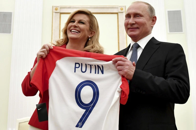 Predsednica Hrvatske Kolinda Grabar-Kitarović danas je u Kremlju predala ruskom predsedniku Vladimiru Putinu crveno-beli dres hrvatske fudbalske reprezentacije sa brojem 9 i ispisanim imenom Putina na njemu.