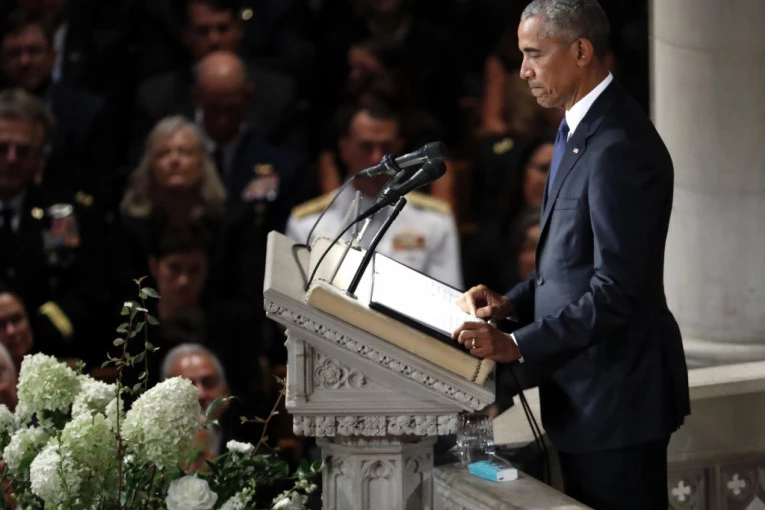 Foto: Tanjug/AP- Došli smo da odamo počast izuzetnom čoveku, ratniku, državniku i patrioti koji je bio otelotvorenje svega što je najbolje u Americi - rekao je Obama.