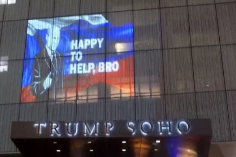 Na fasadi hotela "Tramp Soho" u Njujorku pojavila se projekcija sa slikom ruskog lidera Vladimira Putina sa ruskom zastavom u pozadini.
