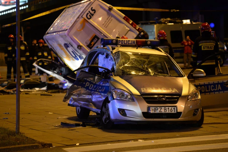 Varšavska policija je saopštila da je policijsko vozilo na raskrsnici udario drugi automobil, nakon čega je ono poletelo na trotoar i udarilo u pešaka.