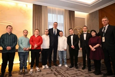 Politika 12:38 14.02.2025 ČLANOVI "DAUN SINDROM CENTRA BANJALUKA" OTPEVALI VUČIĆU "OVO JE SRBIJA": Imao sam privilegiju da se sretnem sa divnim ljudima! (FOTO)