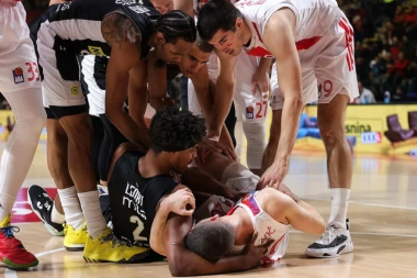 Košarka 11:17 29.11.2022 HOROR NA VEČITOM DERBIJU: Ivanović je još i DOBRO PROŠAO! Pogledajte STRAVIČNU scenu posle koje je košarkaš Zvezde završio meč! (VIDEO)