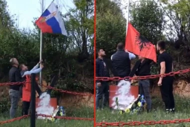 Društvo 13:00 21.02.2022 NOVI POTEZ PROTIV VISOKIH DEČANA: Postavljena tabla bez manastira, a u centru zastava Albanije i OVK (FOTO)