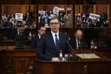 Politika 11:39 02.02.2023 KAO DA SU NA UTAKMICI! Opozicionari kao navijači, uneli transparente u Skupštinu, Vučić im žestoko odbrusio! (FOTO)