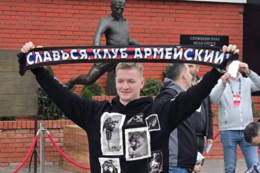 Fudbal 17:35 23.03.2025 ARMEJAC SA BRATSKOG MEČA PRAVO NA MARAKANU: Navijač CSKA došao da podrži Srbiju! (FOTO)