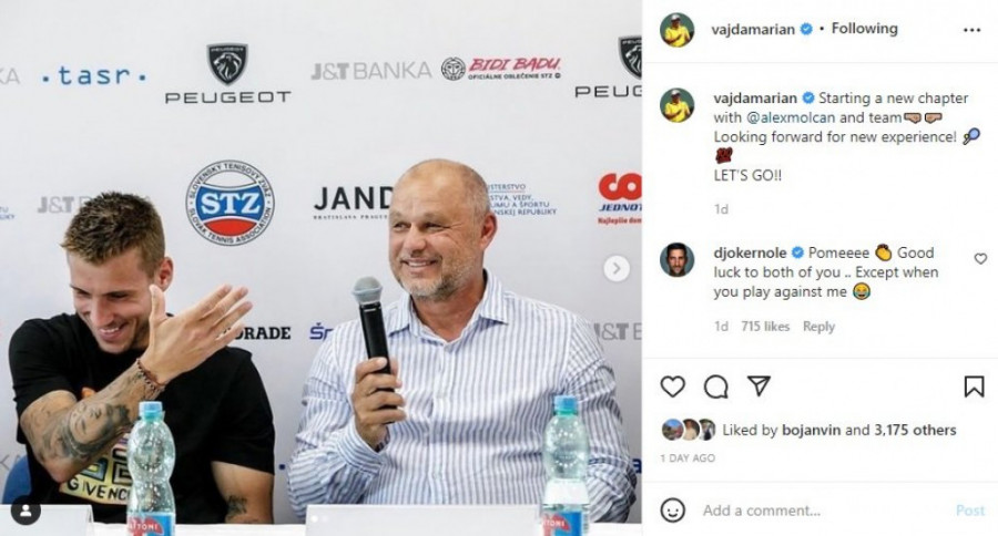 Vajda also bragged about it on Instagram, and his former protégé Novak Djoković was among the first to comment.