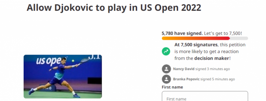 - Allow Djokovic to play in US Open 2022 - is the title of the petition, on the "Change.org" page.
