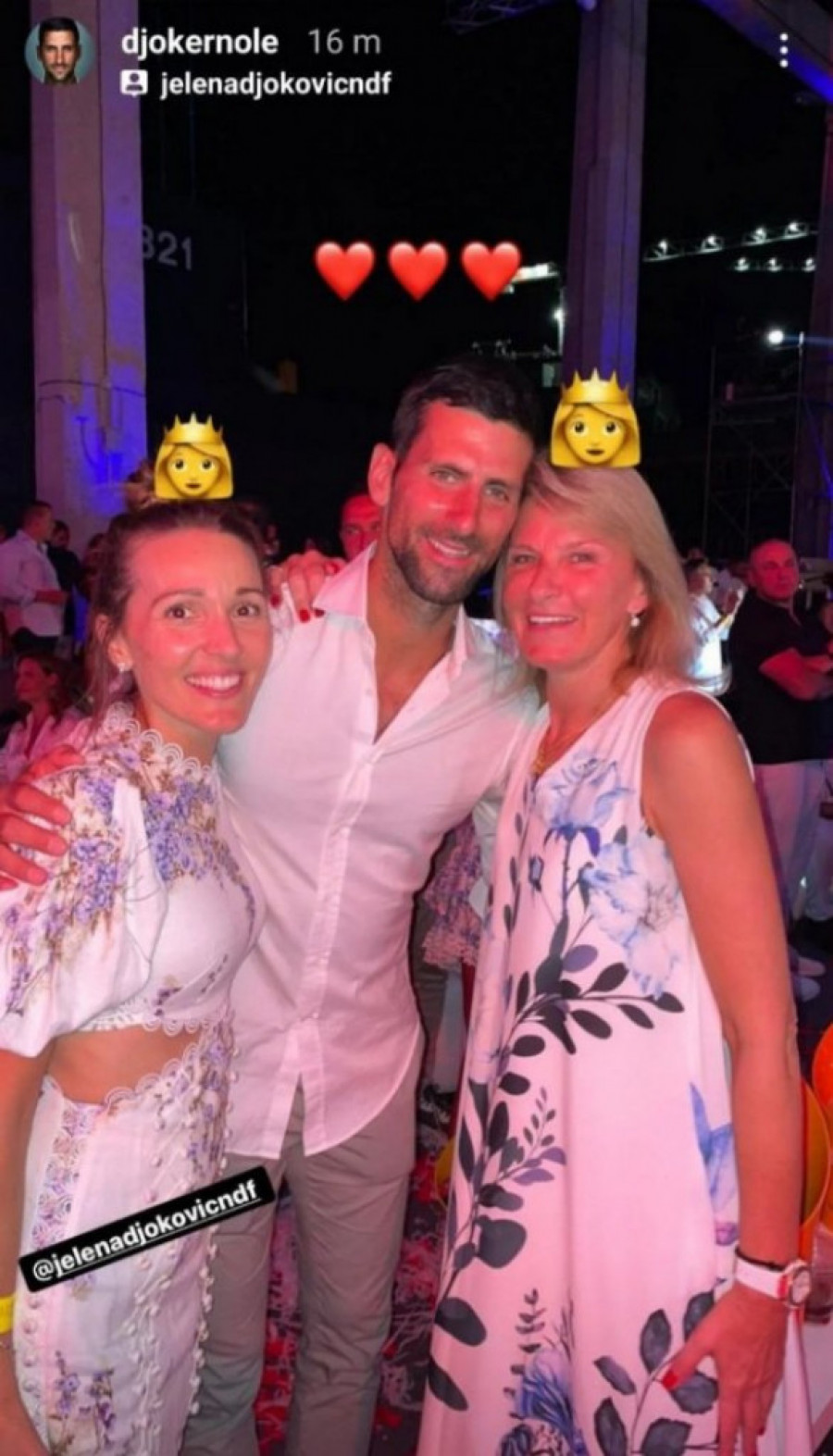The photo is accompanied by three hearts, and above the heads of his wife and mother he put emojis of queens. Both ladies are smiling kindly in the photo, and they even opted for dresses in the same tones of white, blue and green. The only thing missing from the photo is the third queen of Novak's heart, his daughter Tara, who must have been asleep at that time.