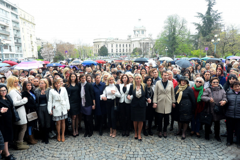 "Žene su pobedile nasilje": 400 članica SNS se okupilo ispred Starog dvora