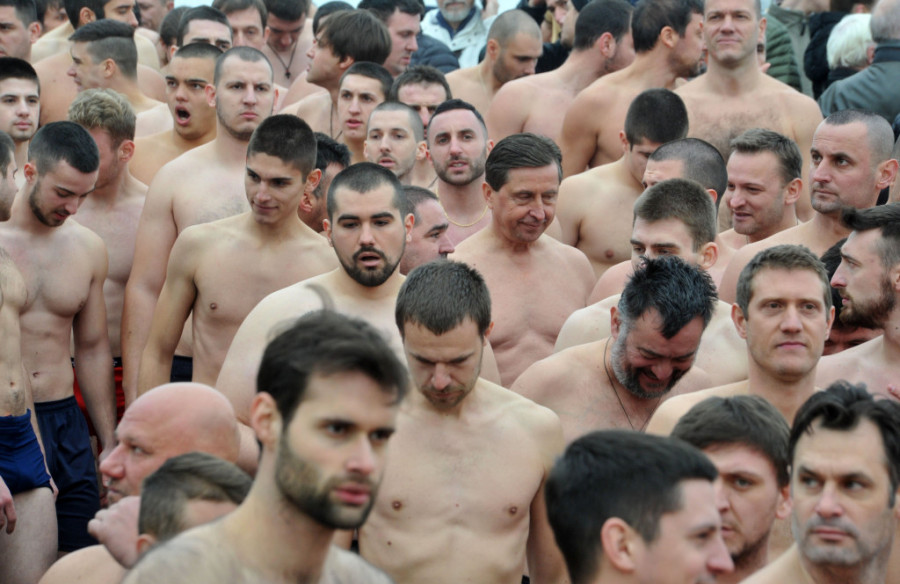 Foto: Tanjug/D. GOLLU Zemunu je u tradicionalnom plivanju za Bogojavljenski krst učestvovalo oko 300 plivača u prisustvu patrijarha Irineja i gradonačelnika Beograda Zorana Radojičića.