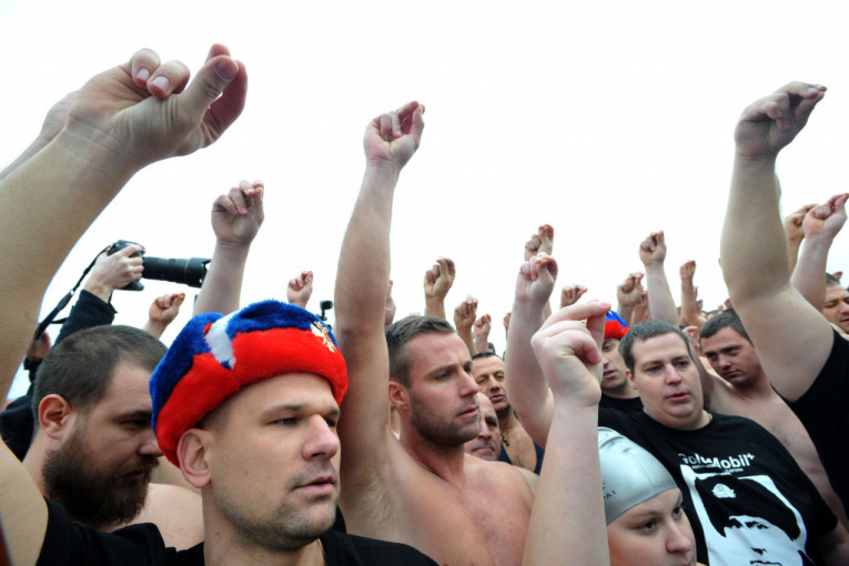 Učesnici su takođe pre plivanja počeli da se zaklinju u čast Srbije, Kosova, RS i Rusije, i otpozdravili sa "Dogodine u Prizrenu".