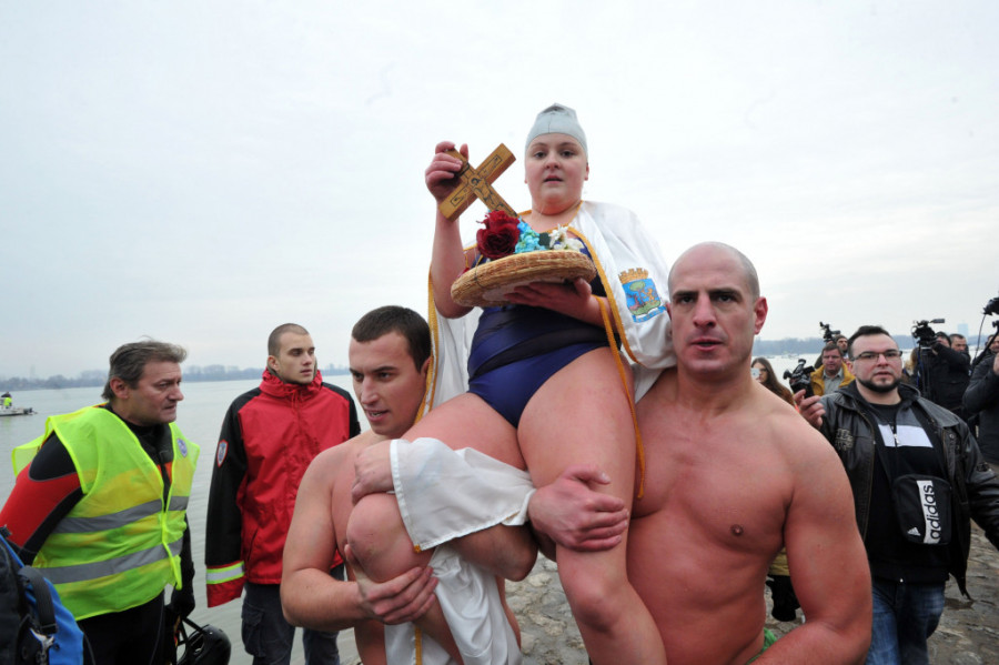 Na zemunskom keju u Beogradu Bogojavljanski krst uzela je danas 18-godišnja Jovana Leposavić iz Beograda, devojka koja se izlečila od raka.