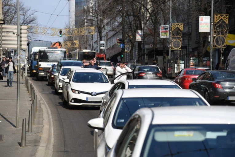 Foto: ST/N. MANDIĆKneza Milana je tokom prolaska kolone zatvorena za saobraćaj, a vozači koje je "presekla" protestna kolona trube, mahali su im i snimali ih. Zanimljivo je da, kako javljaju reporteri "Blica", duž cele rute primetno nije bilo taksista iz beogradskih udruženja.