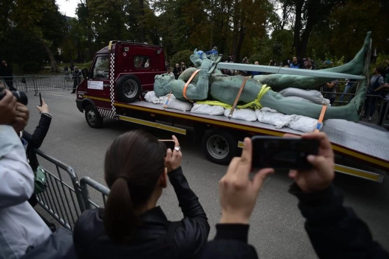 Foto: e-stock/D. MILENKOVIĆRadnici su nešto više od sat vremena spuštali statuu Pobednika sa postamenta na kome je stajao 91 godinu.