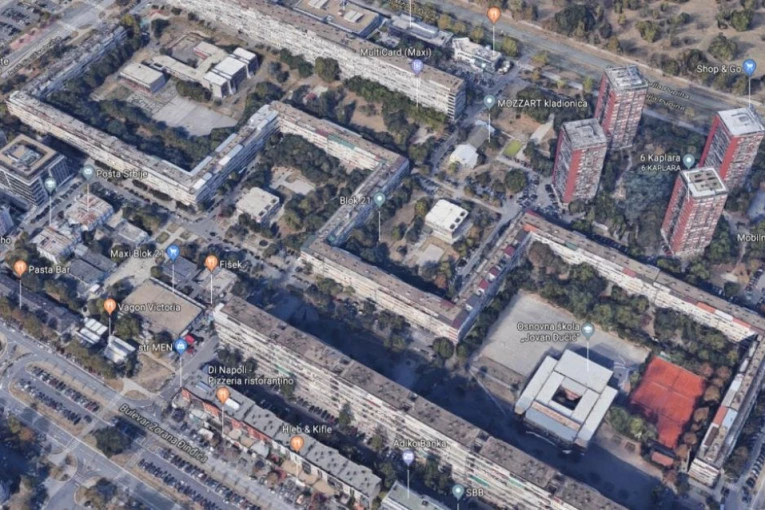 Foto: google.com/maps/prinscreenLamele poređane kao devet domina čine tu zgradu jedinstvenom po veličini, ali i po činjenici da ima 62 ulaza na četiri različite adrese - raspoređene između bulevara Mihajla Pupina i Zorana Đinđića, te ulica Milentija Popovića i Antifašističke borbe, objašnjava glavni gradski urbanista Marko Stojčić.