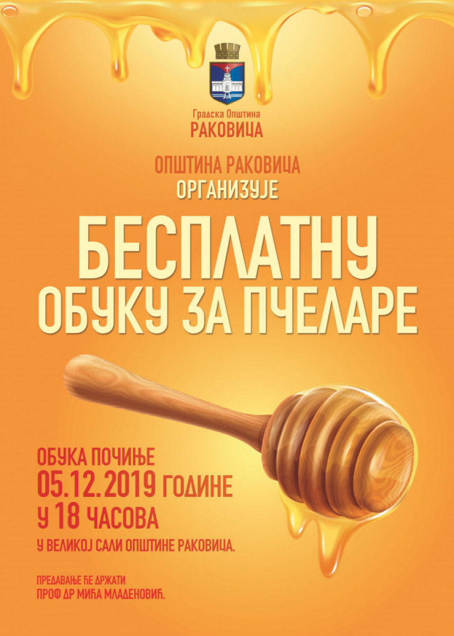 Gradska opština Rakovica u četvrtak organizuje obuku iz oblasti pčelarske proizvodnje za sve one koji su zainteresovani da se upuste u ovaj zanimljiv i isplativ poslovni poduhvat.