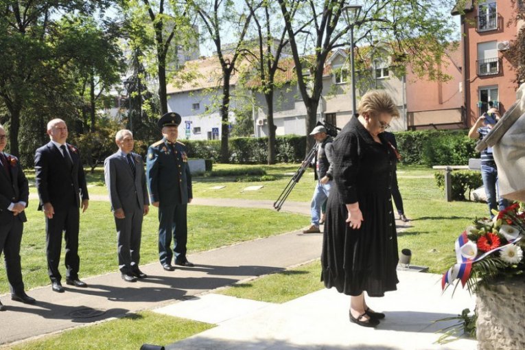 Kaže da je obaveza našeg naroda da se sećamo 9. maja i da ne dozvolimo reviziju istorije, kao i da ne dozvolimo da se posle 75 godina oni koji su uništavali svet i pravili koncentracione logore prikazuju kao heroji, a oni koji su bili žrtve prikazuju kao zločinci.
