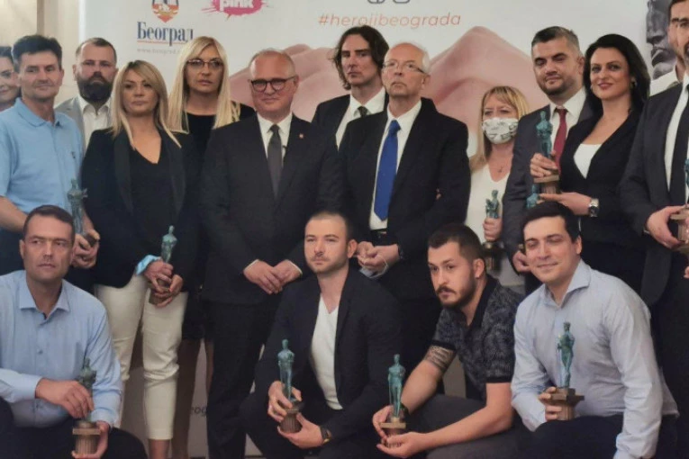 Foto: Grad BeogradNagrade "Heroj Beograda", osim zdravstvenim radnicima, uručene su i predstavnicima policije, vatrogasne službe, radniku GSP, komunalnom radniku, ugostiteljima koji su besplatno pripremali hranu za socijalno ugrožene, radniku JKP "Vodovod i kanalizacija", kao i novinarki RTS-a.