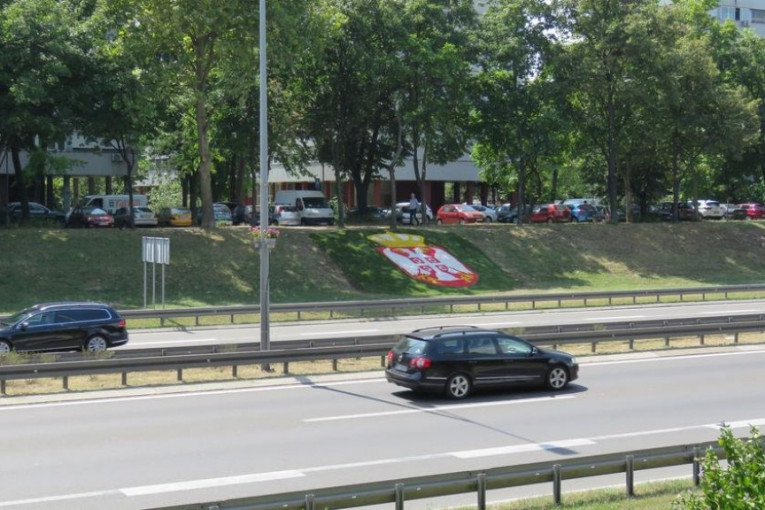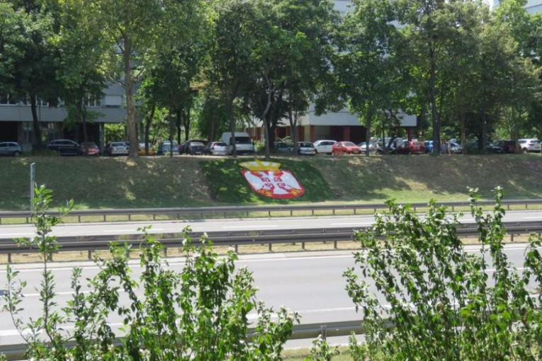 JKP "Zelenilo-Beograd", Beograd je danas završilo radove na izradi grba Republike Srbije na škarpi uz autoput. Grb se nalazi na delu autoputa između ulica Omladinskih brigada i Narodnih heroja, u nivou novobeogradskog Bloka 38.