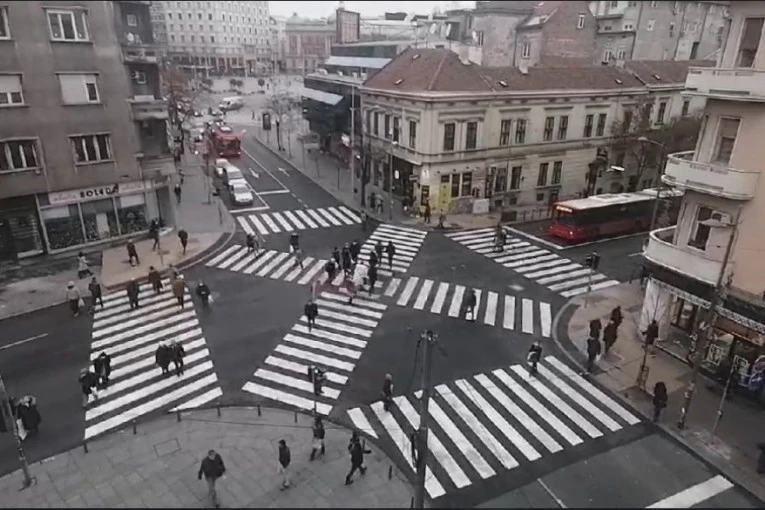 (VIDEO) EKSKLUZIVNI SNIMAK SA ZGRADE DOMA OMLADINE: Pogledajte kako se Beograđani snalaze na novom pešačkom prelazu u centru prestonice