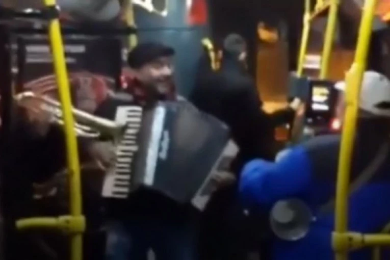 Harmonika i truba bile su glavna atrakcija za sve prisutne putnike, a Moravac numera čiji su taktovi odzvanjali autobusom.