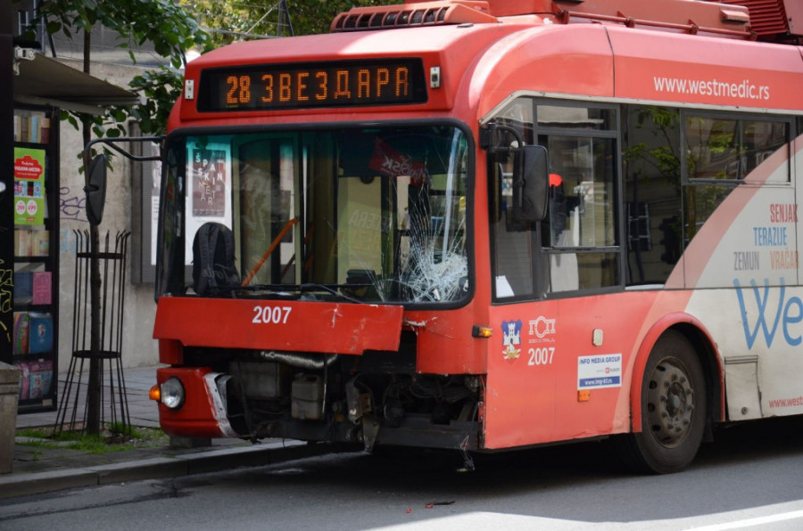 Foto: ST/P. DIVACDo nesreće je došlo kada je automobil pokušao da obiđe trolejbus i udario ga.