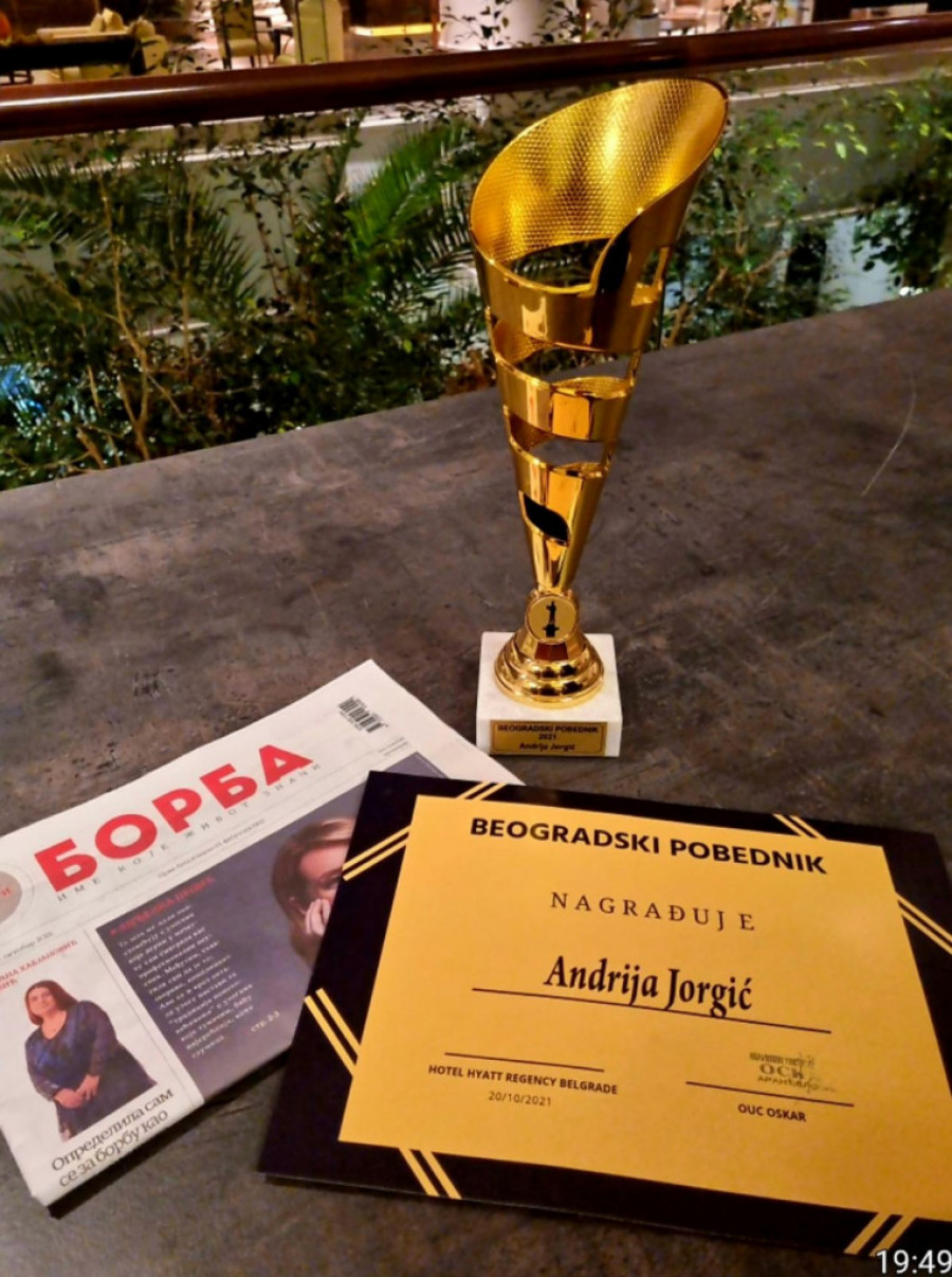 Andrija Jorgić, direktor “Borbe”, dobitnik je ovog priznanja treći put za redom, a nagrada mu je dodeljena u konkurenciji Štampani mediji i čuvar kulturne baštine.