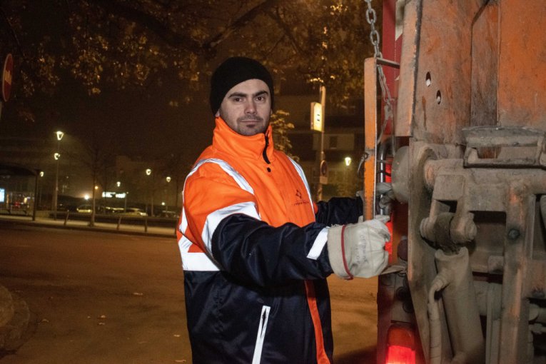 Kroz smeh, radnik beogradskog JKP "Gradska čistoća" Zoran Anđelković (41) dočekao nas je kad smo, prema dogovoru, došli da s njegovom tročlanom ekipom odradimo smenu.