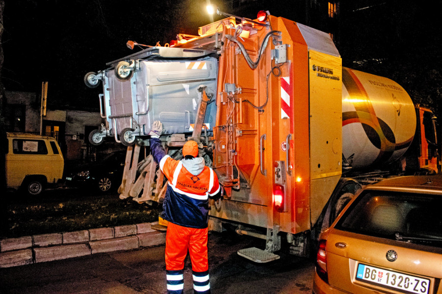 Saznajemo od Zorana da se svakog dana sa Vračara iznese između 80 i 90 tona smeća. Tokom noći u ovaj kamion u prvoj turi ubaci se od 6,5 do sedam tona.