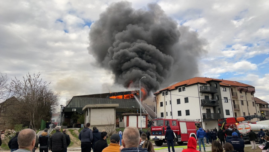 U Obrenovcu je danas došlo do niza detonacija u zapaljenom tržnom centru, verovatno zbog pirotehničkih sredstava.