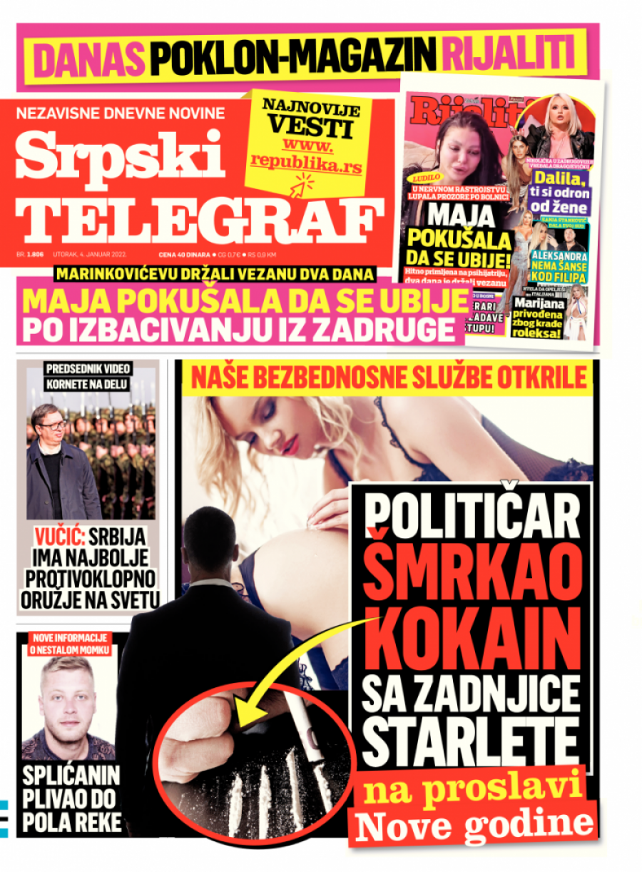 Srpski telegraf u štampanom izdanju za utorak 4.januar donosi pregršt važnih i interesantnih priča.