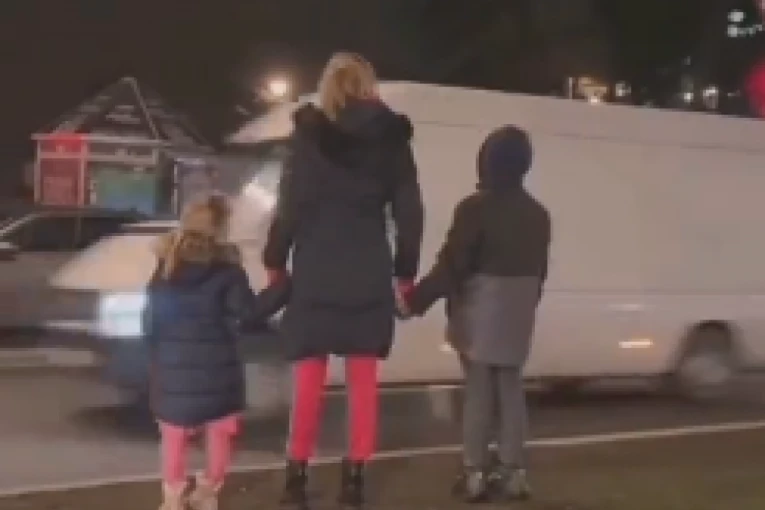 Naime, na njemu se vidi žena koja za ruke drži dvoje male dece i sprema se da pretrči ulicu kojom jurcaju automobili.