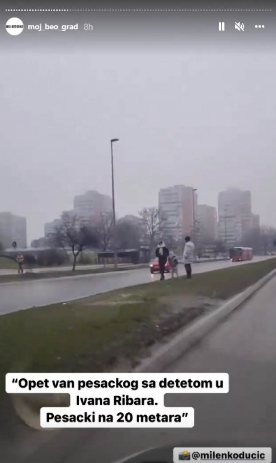 Na Instagram profilu "Moj Beograd" pojavio se snimak na kome se vidi kako se dvoje spremaju da pređu ulicu i pritom vode dete.