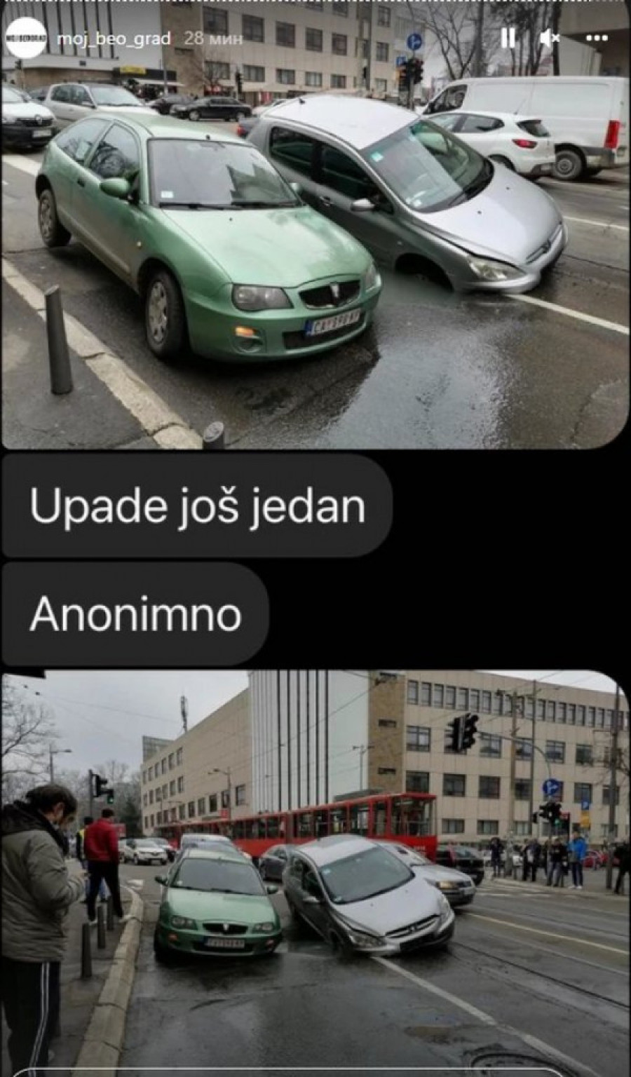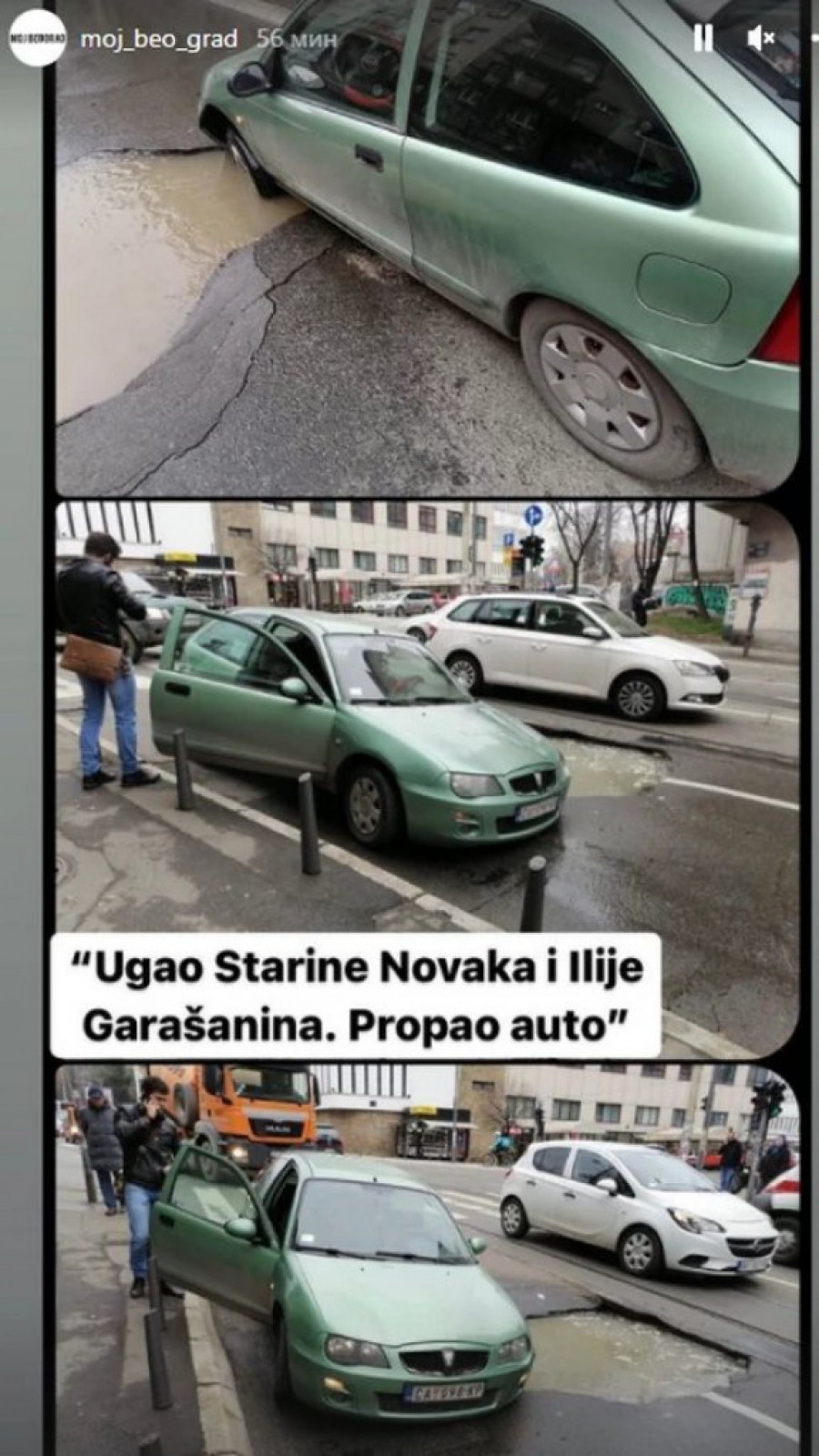 U Beogradu su, na uglu Starina Novaka i Ilije Garašanina, iz za sada nepoznatog razloga, kroz kolovoz propala dva automobila.
