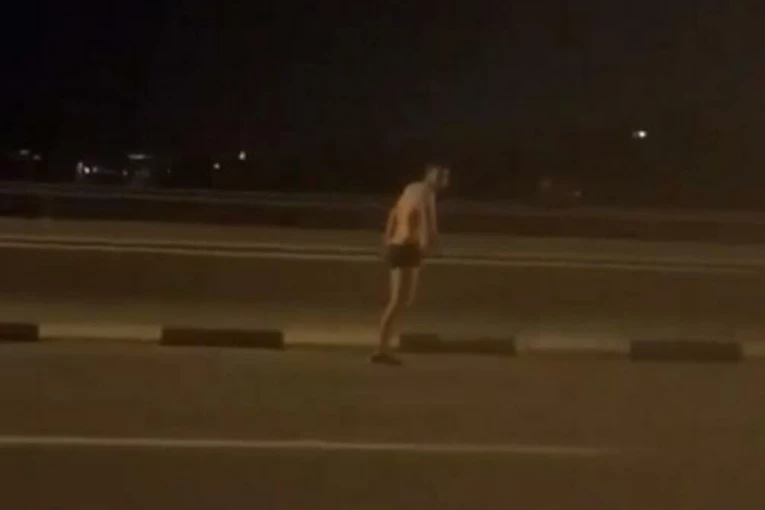 Naime, potpuno nag muškarac pojavio se na mostu, pokušavajući da preskoči ogradu, prenosi Kurir.