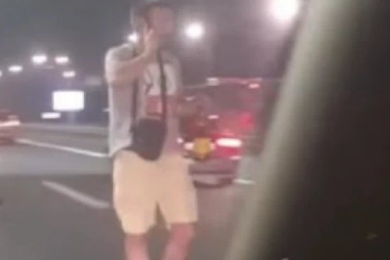 Naime, kako se vidi na snimku objavljenom na društvenim mrežama, mladić u šortsu i majici u jednoj ruci drži alkoholno piće, dok u drugoj drži telefon i kreće se auto-putem na Autokomandi.