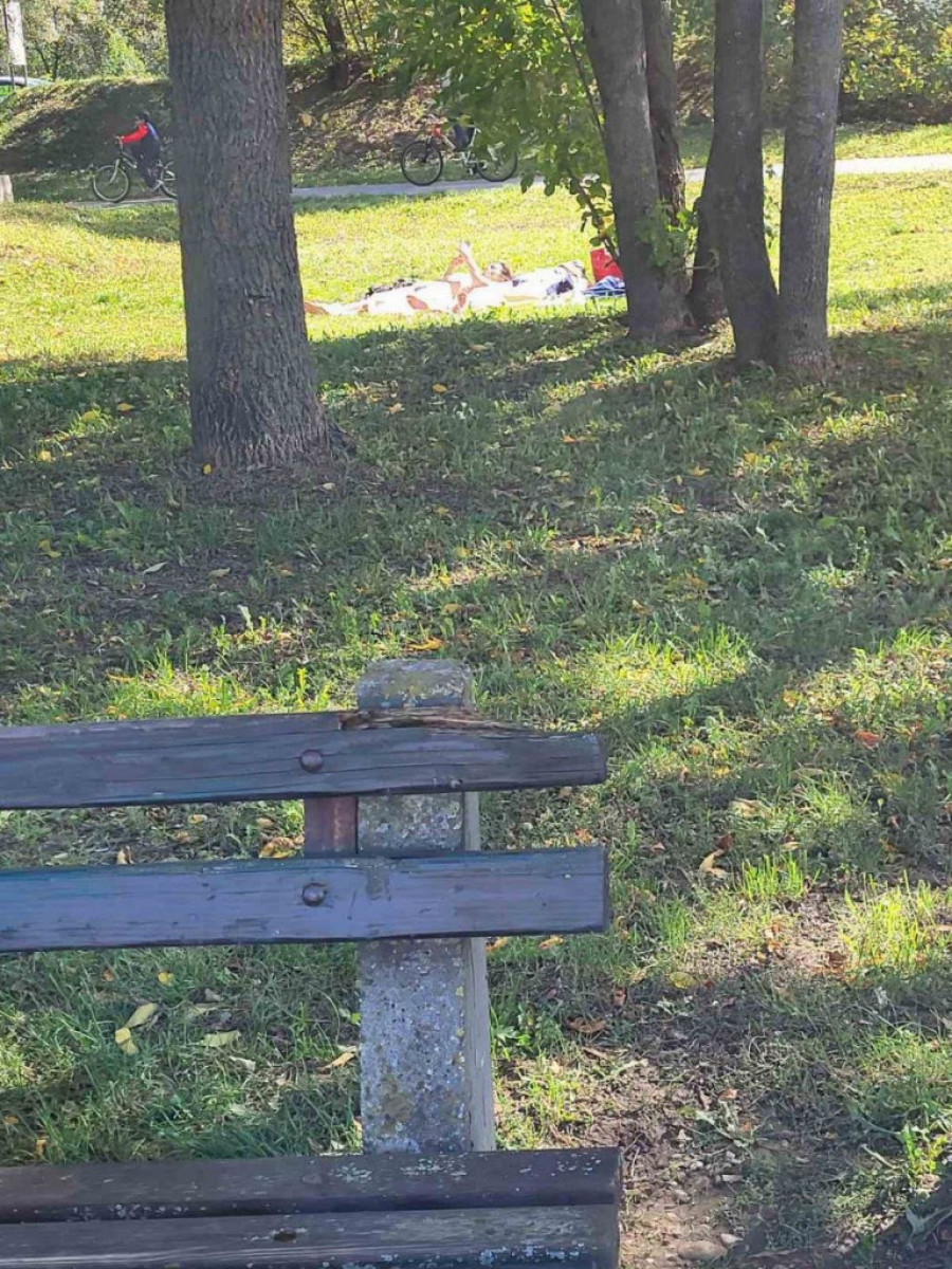 Nedaleko od njih, dve žene su razvukle peškire, leže i sunčaju se, ne obraćajući pažnju na prolaznike.