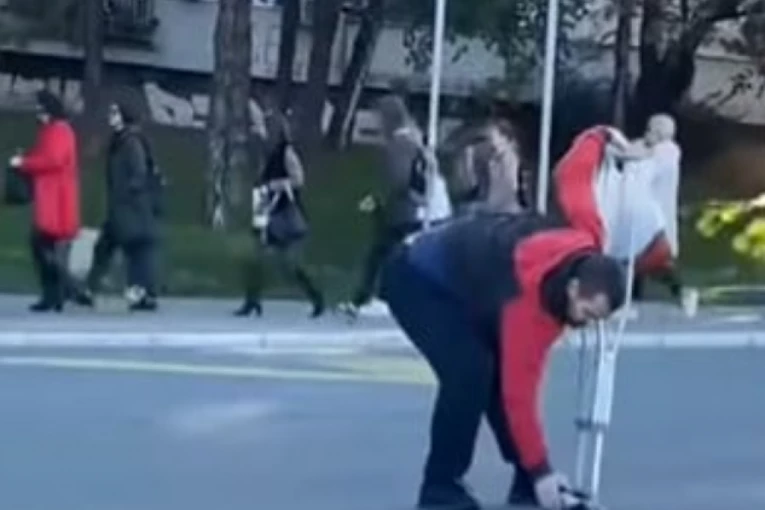 Na društvenim mrežama osvanuo je snimak muškarca u Vojislava Ilića koji sa štakama jedva prelazi ulicu kako bi pomogao povređenom mačetu.