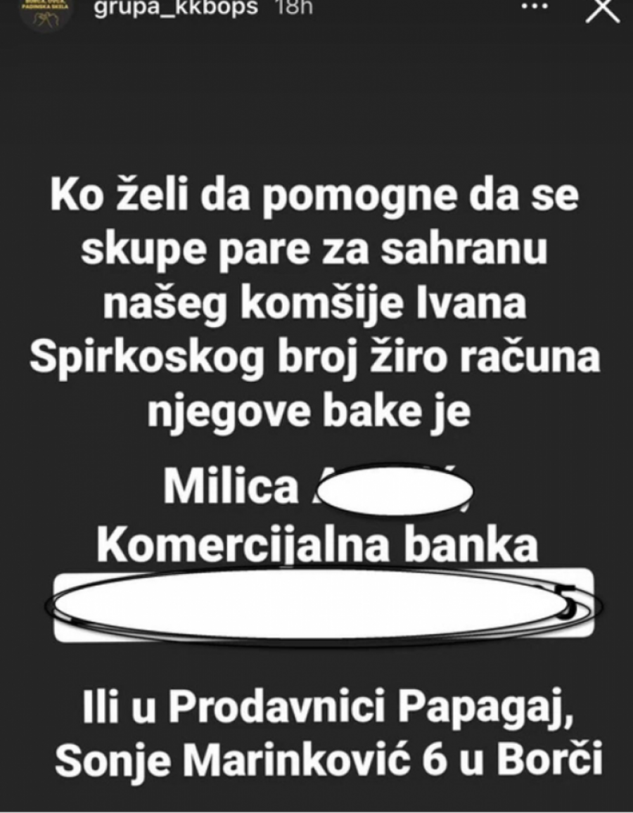 Na Instagram grupi "Grupa Krnjača, Kotež, Borča, Ovča, Padinska skela" juče je objavljen apel u kojem se mole svi oni koji prate ovu stranicu da uplatom, po sistemu "koliko ko može" pomognu porodicu preminulog Ivana.
