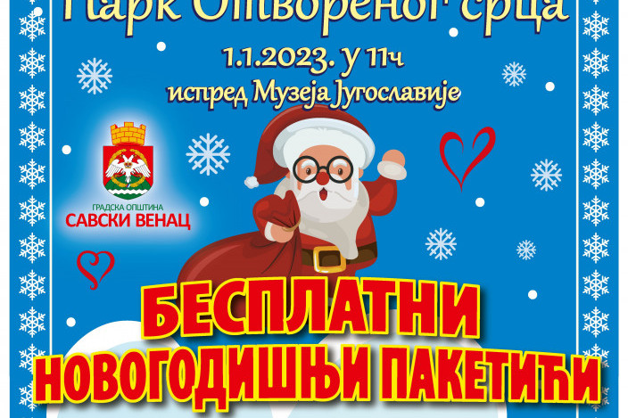 Kako bi Novu godinu započeli sa osmehom i prazničnom čarolijom darivanja u kojoj mališani najviše uživaju, GO Savski venac organizuje tradicionalnu novogodišnju manifestaciju „Park otvorenog srca“ 1. januara 2023. godine s početkom u 11.00 časova, ispred Muzeja Jugoslavije. Novogodišnji paketići će biti podeljeni na dan manifestacije mališanima.