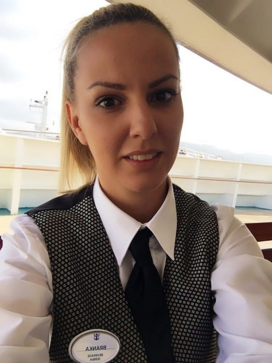 - Došavši na kruzer trebalo je da radim kao konobar, ali kako nikada nisam imala sreću u saradnji sa ženama, nadređena je nekoliko nas oborila na testu nakon jednomesečne obuke, te mi je ponuđeno da budem "bar boy". To je posao čišćenja za šankerima i konobarima. Imala sam mogućnost da to odbijem i vratim se kući, ali nije mi u karakteru da se ne suočavam sa problemima. Prebrodila sam to na svoj način - priča Branka.