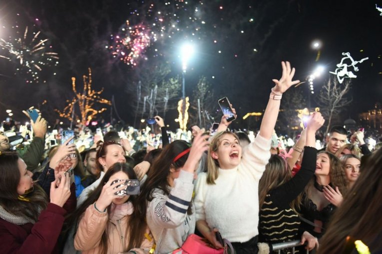 Srpskom prestonicom ove noći je sve u prazničnom duhu, a vidno raspoloženi ljudi čestitali su jedni drugima Novu godinu.
