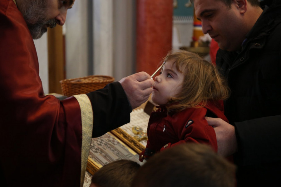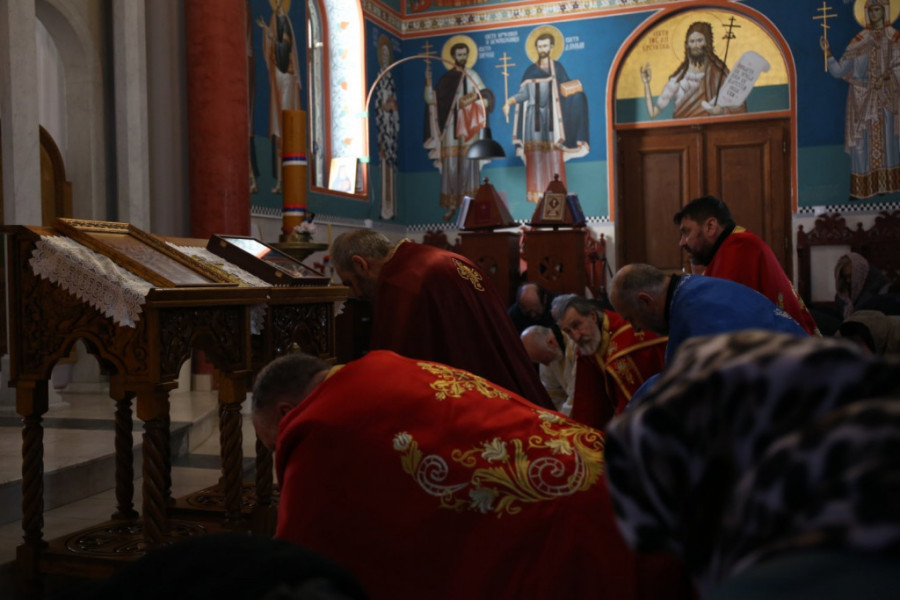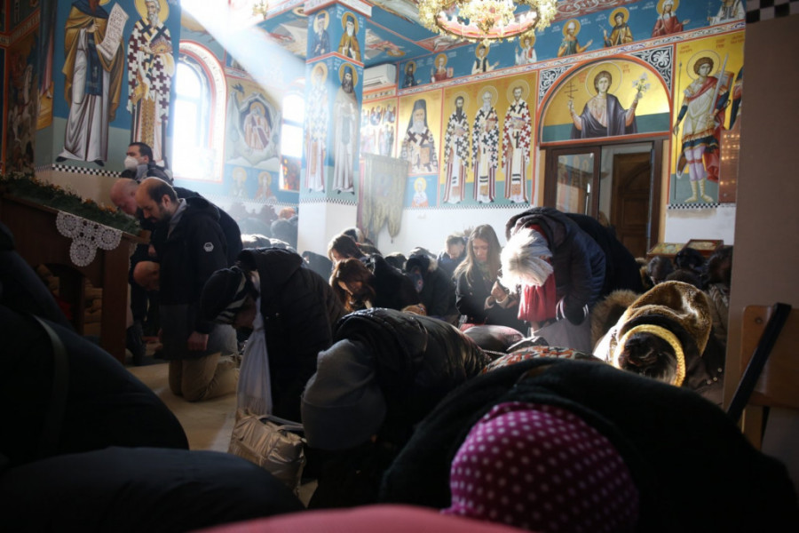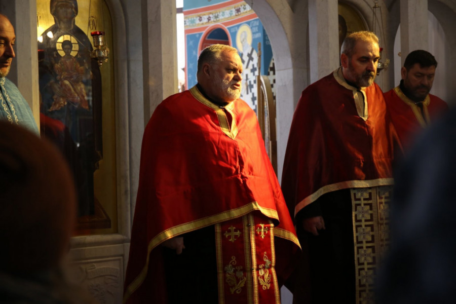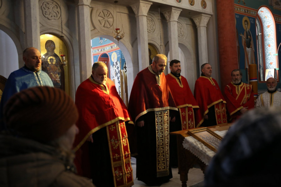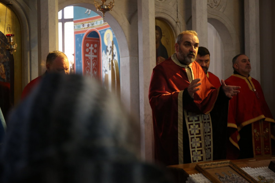 Nakon liturgije koja je počela u 12 časova u ovom hramu, čitao se Akatist, a sveštenstvo je govorilo o istorijatu prenosa moštiju.