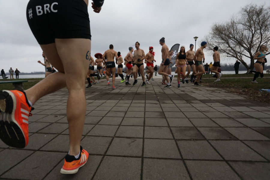 Hladan vetar uz reku odavao je utisak da je temperatura i niža od dva stepena, koliko je zabeležio termometar. To, međutim, nije sprečilo entuzijastične sportiste da se, nakon zagrevanja, bodreći jedni druge, upuste u "golu trku" od 1.600 metara.