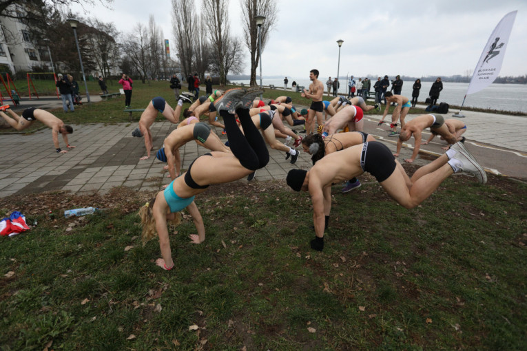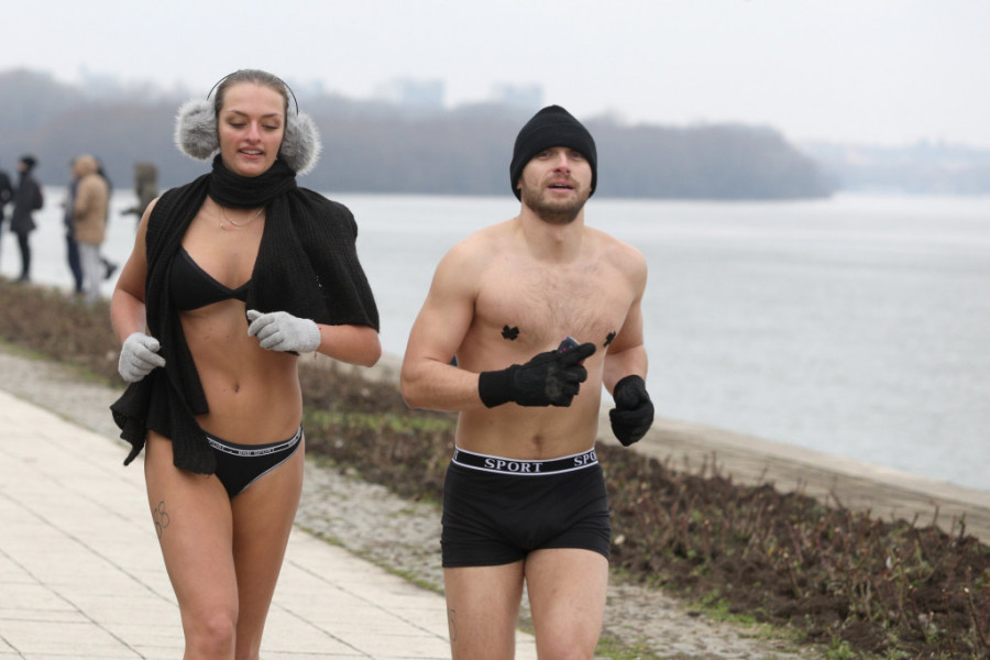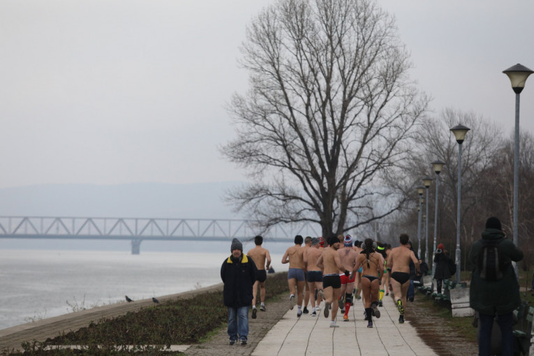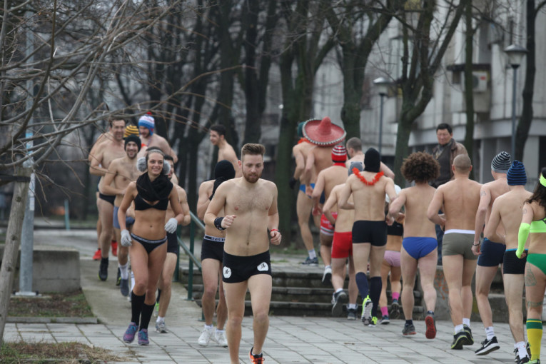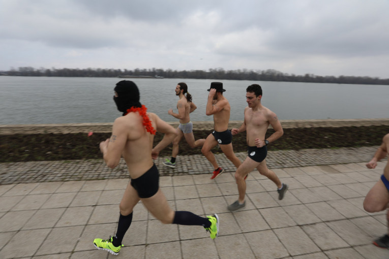 Kape, šalovi i grejači za uši i na sve to još samo donji veš. Tako su najhrabriji sportisti i sportistkinje Beogradskog trkačkog kluba krenuli u današnju neobičnu trku Dorćolom.