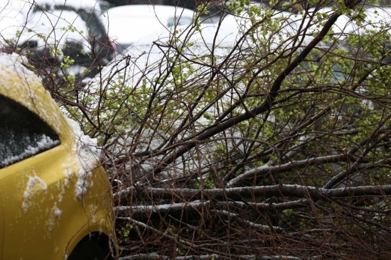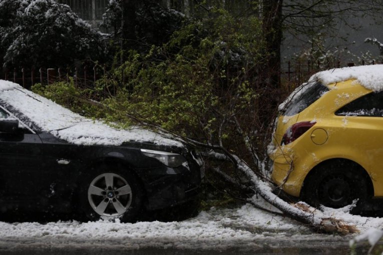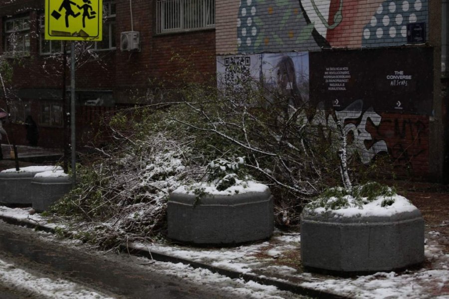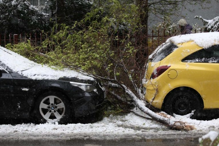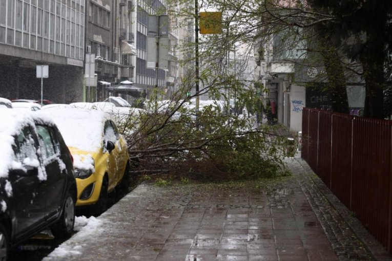 Međutim, ovo nije usamljen slučaj. Od jutros pod težinom snega koji je na granama, padaju grane i stabla širom Beograda.