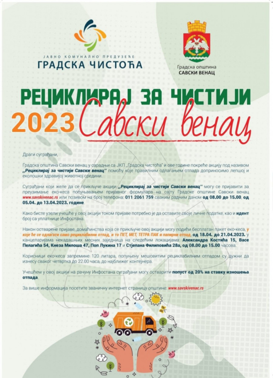 RECIKLIRAJ ZA ČISTIJI SAVSKI VENAC 2023: Opština poziva građane da učestvuju u akciji!