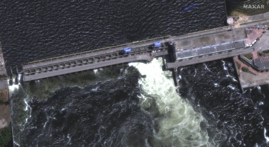 Ukrajina je rekla da je branu uništila Rusija, dok su ruski zvaničnici izneli konfliktne izjave – neki su rekli a je uništena ukrajinskim granatiranjim, drugi da se srušila zbog ranijih oštećenja.